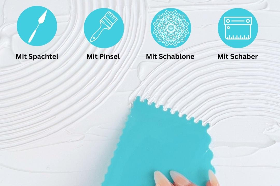 Mische die Acryl Spachtelmasse einfach oder übermale sie mit Acrylfarbe. So verleihst du deiner Leinwand mit Strukturpaste eine einzigartige Optik.